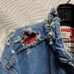 HEAVILY DISTRESSED MARLBORO DENIM JACKET W/ LEATHER COLLAR