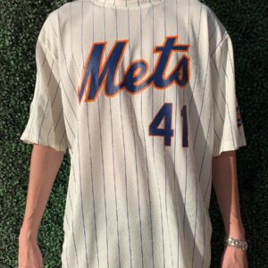 MLB NEW YORK METS PULLOVER PINSTRIPE MESH BASEBALL JERSEY
