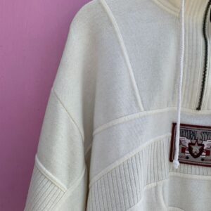 CUTE 1980S-90S QUARTER ZIP RIBBED PANEL PULLOVER SWEATSHIRT PATCH APPLIQUE
