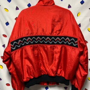 SOUTHWESTERN STYLE WOVEN KNIT PANEL SNAP CLOSURE ZIP-UP NYLON BOMBER JACKET