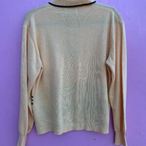 LATE 1960S KNIT QUARTER BUTTON SWEATER TOP CONTRAST COLOR