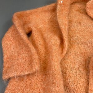 1960S MOCK NECK PEACH MOHAIR LONG OPEN CARDIGAN SWEATER SEQUIN DETAIL
