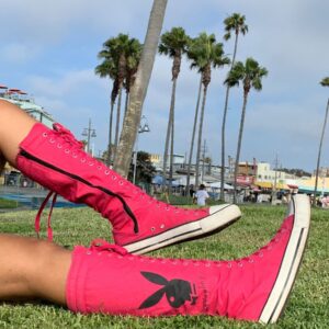 SUPER Y2K HIGHTOP PLAYBOY CONVERSE STYLE FULLY LACEUP SNEAKERS PLAID INTERIOR