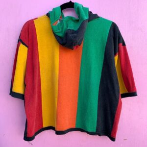 1990S BOXY CROPPED HOODED COTTON TSHIRT RASTA COLORED STRIPES