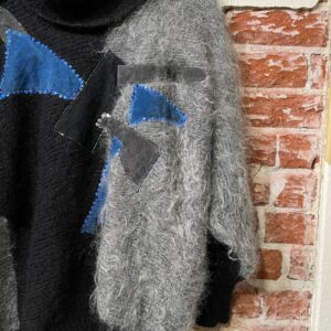WOOL MOHAIR SUEDE SEQUIN PATCHWORK TURTLENECK SWEATER WITH WIDE WAISTBAND