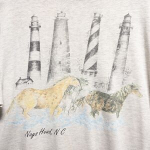 *AS-IS* NAGS HEAD, N.C. OUTER BANKS WILD HORSES & LIGHTHOUSES WRAP AROUND GRAPHIC BOXY FIT T SHIRT