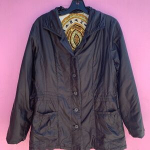 AMAZING PEARLESCENT CINCHED DESIGN FRONT & VELOUR LINED REVERSIBLE BUTTON UP JACKET W/ BEADED ACCENTS
