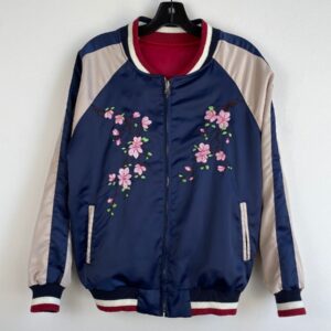 NICE REVERSIBLE EMBROIDERED CHERRY BLOSSOM & WOLF SATIN SUKAJAN STYLE JACKET