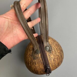 SO CUTE! ACTUAL REAL COCONUT DOUBLE HANDLE ZIP PURSE FABRIC LINING