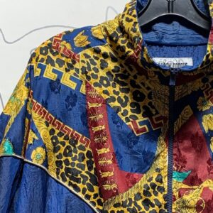 MIXED COLOR BLOCK AND CHEETAH PRINT ZIP UP WINDBREAKER