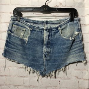 SIZE 30 FADED DISTRESSED DENIM SHORTS STITCHED HORSE DESIGN AND HEART PATCH W30 *AS-IS* CUT OFF WAIST BAND