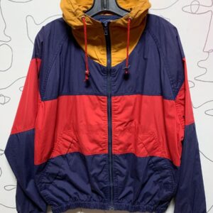 1990S COLOR BLOCK STRIPE HOODED ZIP UP WINDBREAKER