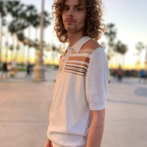 AS-IS THICK RIBBED STRIPED GEOMETRIC CREW NECK SHORT SLEEVE PULLOVER SHIRT