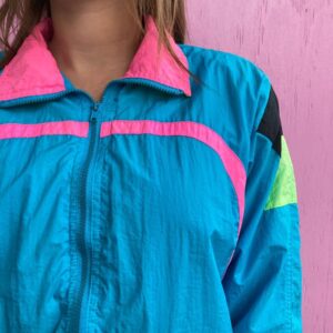 AS IS 1980S NEON GEOMETRIC DESIGN ZIP UP WINDBREAKER FRONT POCKETS