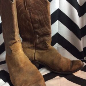 JUSTIN COWBOY BOOTS – FINISHED LEATHER TOPS W/RUFF OUT BOTTOMS