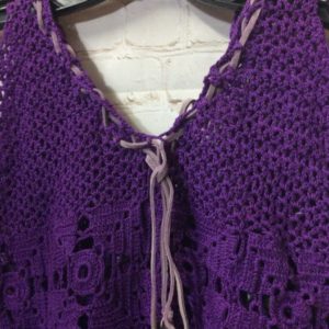 CROCHET TOP W/ FRINGED BOTTOM & SUEDE RIBBON