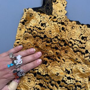 *AS-IS* AMAZING 1990S GOLD EMBROIDERED LACE CROPPED STRETCH TOP