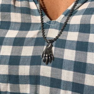 SAY ANYTHING AYE-OK HAND PENDANT CHARM, SILVER PLATED SNAKE CHAIN NECKLACE