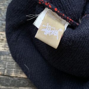 RAD STUSSY LOGO COLOR BLOCK KNIT POMPOM BEANIE HAT