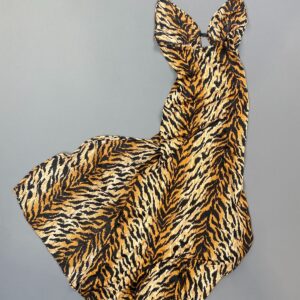 SOOO GOOOOD! 1970S TIGER PRINT DOUBLE SIDED SUPER HIGH SLIT KEYHOLE HALTER MAXI DRESS