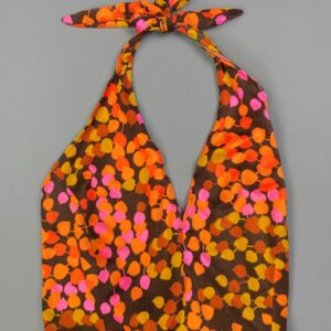AWESOME! NEON PSYCHEDELIC PRINTED MAXI HALTER DRESS TIE BACK DETAIL SUPER HIGH SLIT