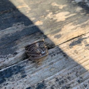 WIDE BAND STERLING SILVER RING UNUSUAL FLORAL DESIGN
