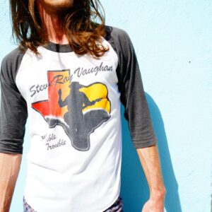 AS-IS STEVIE RAY VAUGHAN AND DOUBLE TROUBLE SOULD TO SOUL TOUR 85 RAGLAN T-SHIRT