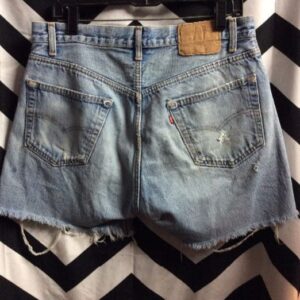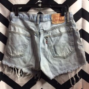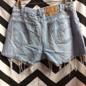 LEVIS DENIM SHORTS – CUTOFF – FRAYED – 505 – RED TAB – LONG LENGTH