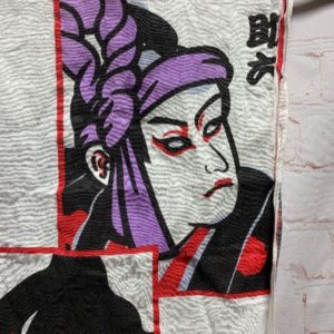 COTTON GAUZE SCARF W/ JAPANESE SAMURAI WARRIORS DESIGN & RECTANGLE SHAPE