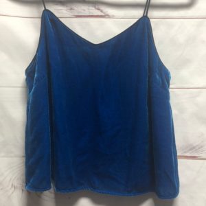 VELVET SPAGHETTI STRAP CAMI TOP WITH CONTRAST PIPING TRIM