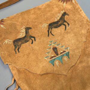 1990S HAND PAINTED SUEDE FRINGE PURSE SOUTHWESTERN TRIBAL DESIGN