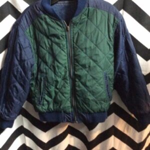 1980’S DENIM BOMBER JACKET – ZIP-UP – MULTIPLE FRONT POCKETS – REVERSIBLE – QUILTED INTERIOR/LINING
