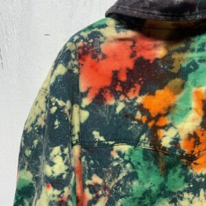 TIE-DYE CARHARTT STYLE ZIP-UP JACKET- CORDUROY COLLAR AND FLEECE INTERIOR AS-IS