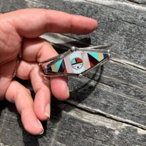 VINTAGE – STERLING SILVER – ZUNI – INLAYED SUN FACE DESIGN