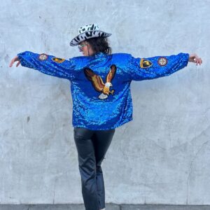 ALL OVER SEQUIN AUTOMOTIVE PATCHES EAGLE BACK PATCH SNAP BUTTON BOMBER JACKET