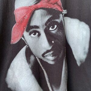 TSHIRT TUPAC RED BANDANA RHINESTONED LARGE ALLOVER GRAPHIC MADE IN USA