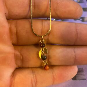 LEAVES & BEADS PENDANT TIGHT LINK GOLD PLATED NECKLACE 1980S DEADSTOCK
