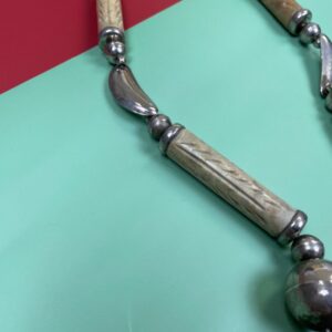 OVERSIZED SILVER BEADS & CARVED ANTLER BAUBLE NECKLACE