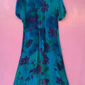 1990S PURPLE FLORAL PRINT SHEER FRONT BUTTON UP BELTED DRESS COVER UP