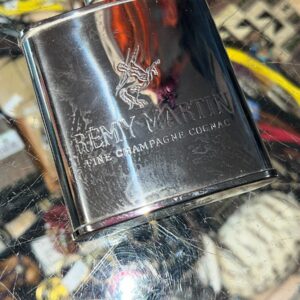 VINTAGE BRANDED REMY MARTIN MINI TRAVEL LIQUOR FLASK, VELOUR SLEEVE
