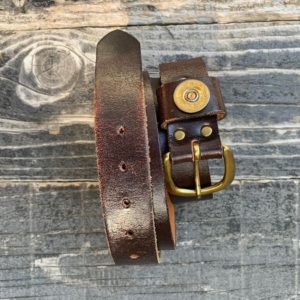 LEATHER BELT BRASS HARDWARE WINCHESTER BULLET DETAIL