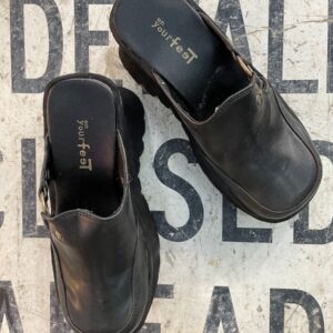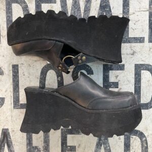 Y2K CHUNKY SLIP ON PLATFORM PLEATHER MULES BRASS HARDWARE