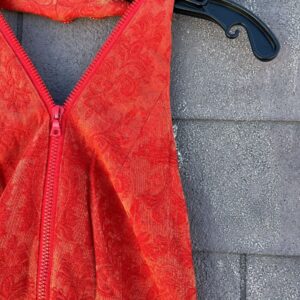 BOMBER JACKET – VELVET – TROPICAL FLOWER BROCADE DESIGN – RED QUILTED LINING