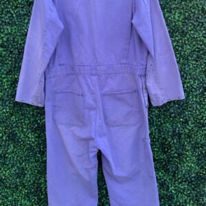 SUPER FADED INDIGO FRENCH COTTON WORKWEAR JUMPSUIT FULL ZIP *REPAIRS *RUST MARKINGS