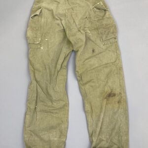 DISTRESSED WW2 1930S-40S HERRINGBONE MILITARY FATIGUE CARGO POCKET TROUSERS 13 STAR BUTTONS