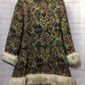 VINTAGE TAPESTRY CARPET COAT BOHO FIT FLARE FAUX FUR CUFFS AND TRIM
