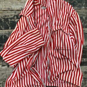 FABULOUSLY RETRO 1960S ZIP UP PINSTRIPE RED AND WHITE CARPET JACKET WITH FRONT POCKET 100% COTTON AS-IS