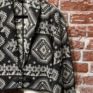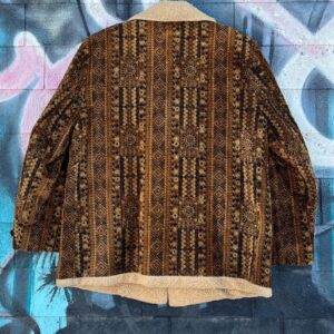 AMAZING 1970S THICK WOVEN TEXTILE CARPET JACKET WITH SHERPA INNER LINING