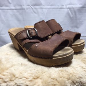 OPEN TOE WOODEN CLOGS LEATHER STRAPS – AS IS MADE IN SWEDEN