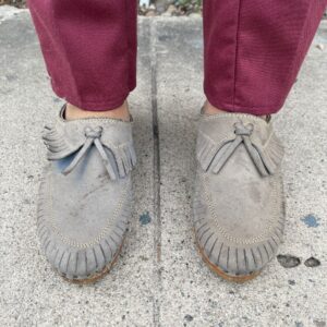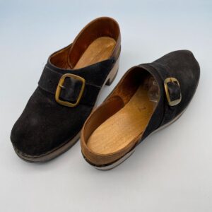 AUTHENTIC SUEDE & WOOD CLOGS BRASS BUCKLE BLOCK HEEL